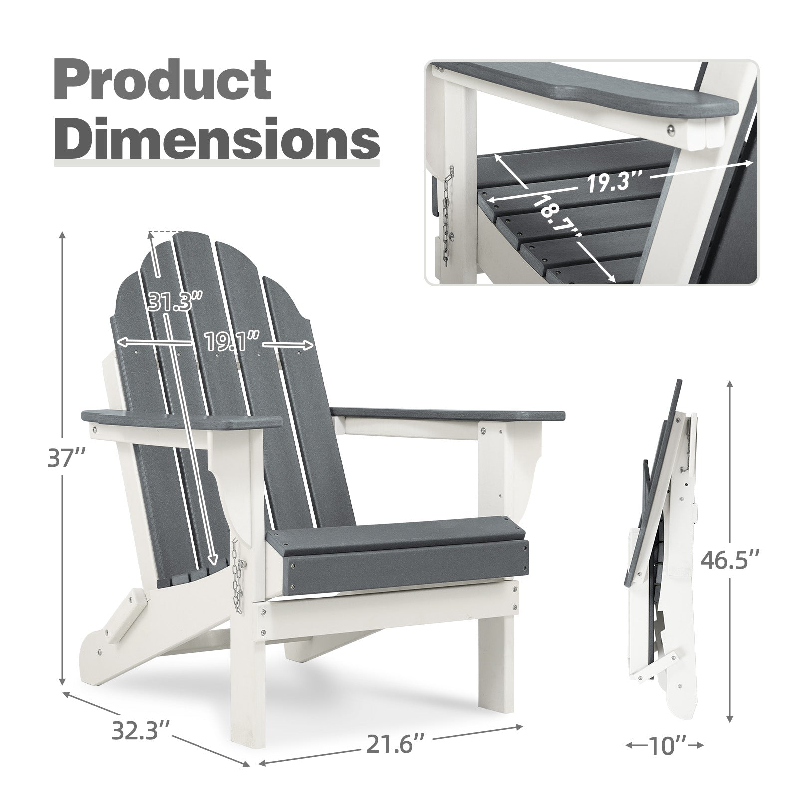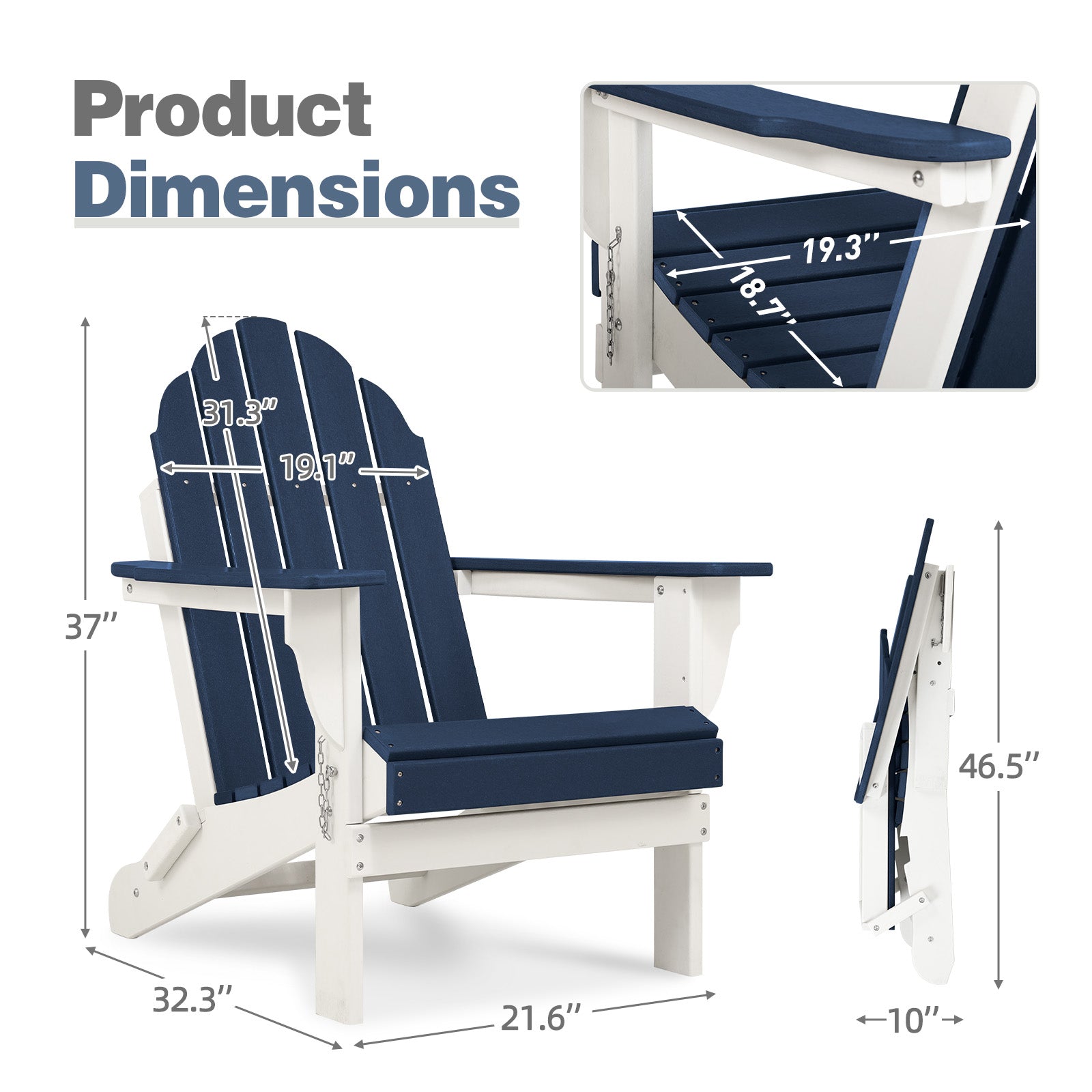 32(L)x22(W)x37(H) inch Folding Adirondack Chair